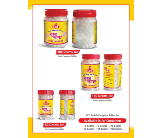 Product Basket included a wide range and various shapes[Round ,Squre ] of PURE camphor Tables [round ,Square ] Camphor Slab , Camphor [Kapoor cone ] Cones and ISO borneol flakes [ BHIMSENI KAPOOR] in POUCHES AND PLASTIC CONTAINER [BOTTLE / JAR ] IN Various packing size , Styles and shapes under the Registered Brand Name of “ LEO “ “ OJASVI “ , and “ LABHJYOTI “.